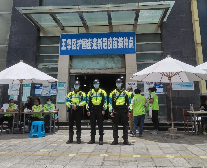 6月26日,按照上级要求,全力做好新冠病毒疫苗接种工作,大队领导班子高站位谋划、高标准要求,高迅速推进,第一时间抽调警力下沉到市体育馆、昆医附二院、护国、红云、丰宁街道疫苗接种点开展秩序维护,交通疏导、驻点守望和宣传发动等工作。
