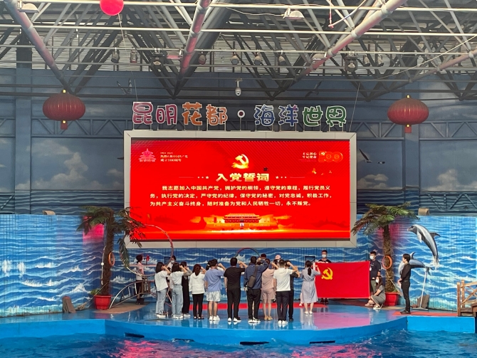 活动一开始,党员们重温了入党誓词,团员们重温了入团誓言。大家表示,将会用实际行动来兑现今天的铮铮誓词。期间,还开展了党史知识及科普知识有奖竞答、参观海洋生物、观看鲸豚表演等,让大家了解环境保护以及濒危灭绝动物知识等。