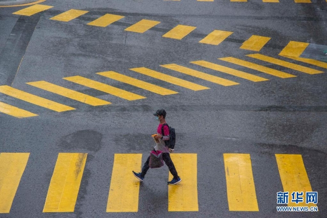 7月8日,一名送餐员从马来西亚吉隆坡的街上走过。新华社发(张纹综 摄)