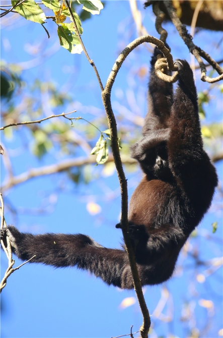 “天行长臂猿没有尾巴,能站立行走,是和人类亲缘关系较近的灵长类动物。”云南铜壁关省级自然保护区管护局盈江管护分局副局长左常盛说。天行长臂猿又叫高黎贡白眉长臂猿,是世界濒危、国家Ⅰ级重点保护野生动物。全球仅存不到200只,主要分布在云南高黎贡山区域。2017年1月12日,中科院昆明动物研究所、中山大学、云南省林业厅等单位联合对外发布了一种长臂猿的最新研究成果,科研人员认为这是一个长臂猿新种,并将其命名为天行长臂猿,这也是中国科学家命名的唯一一种类人猿。