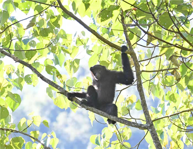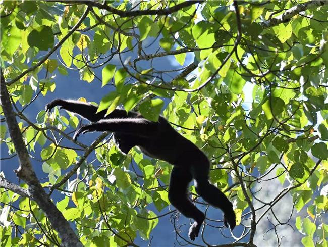 在云南省德宏傣族景颇族自治州的森林里,生活着世界上唯一由中国科学家命名的一种类人猿——天行长臂猿。7月7日早晨,COP15“滇西秘境·云南德宏生物多样性”采访团进入德宏州境内的大娘山,去寻找地球上仅存不到200只的天行长臂猿。