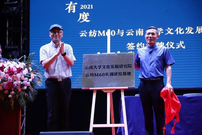 当天,云纺M60与云南大学文化发展研究院签署合作协议并为实训研究基地授牌。