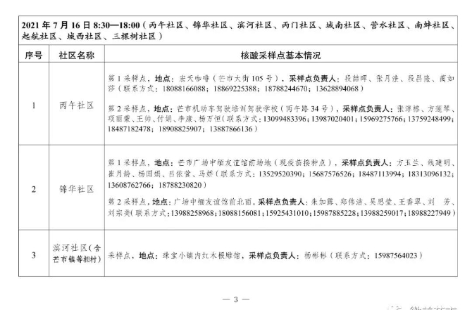 二、采样地点:以居住地社区为单位,由社区负责通知到指定地点采样。