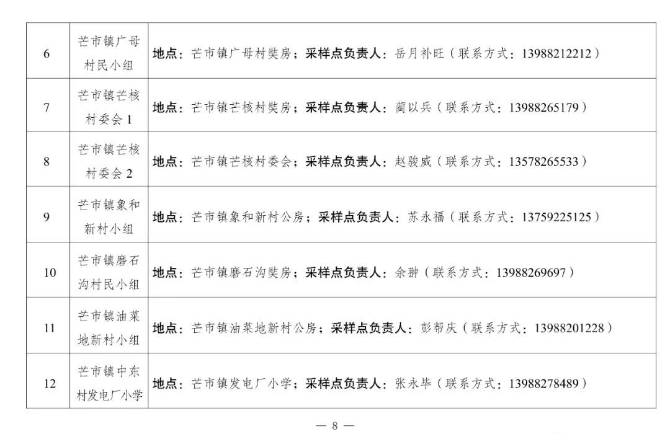 五、请中央、省、州属驻芒市及市直各单位公职人员根据自己居住地所在区域的检测时间,提前向单位进行报备,调整好工作时间和工作安排,按时参加检测。