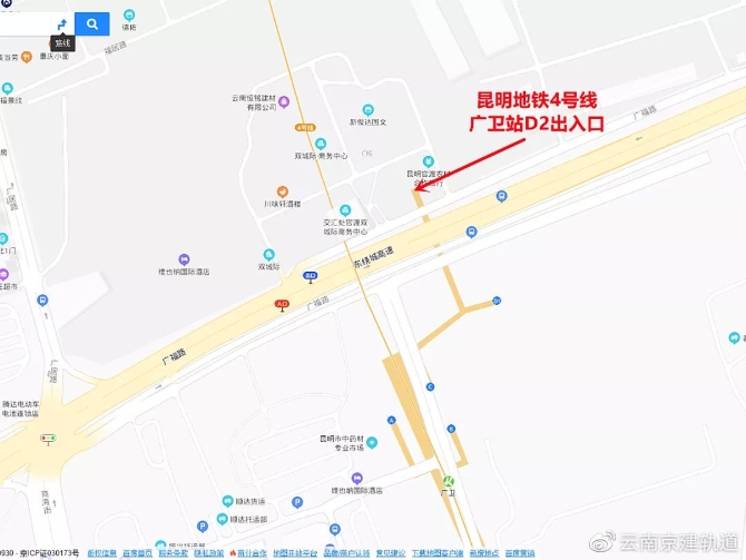 记者日前从云南京建轨道公司获悉,为进一步提升昆明地铁4号线服务质量,满足广大乘客出行需求,昆明地铁4号线广卫站D2出入口建设工作已全面完成,将于2021年7月18日正式投入使用。