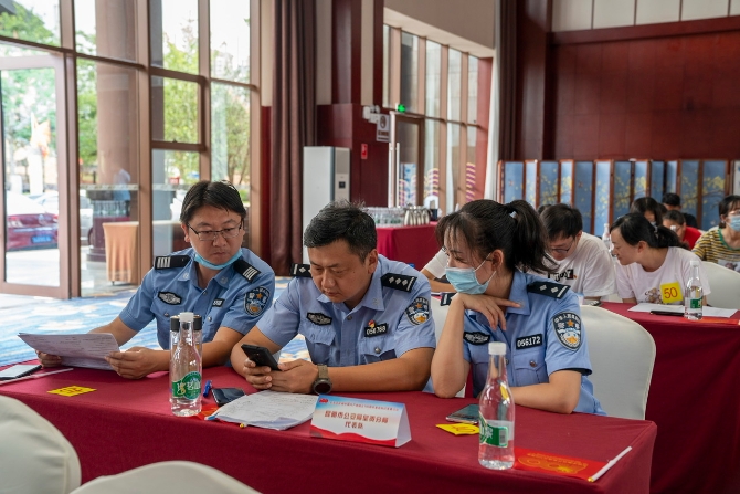 现场,每只队伍都起了响亮而有特色的队名,有“星火燎原”队、“初心如炬”队、“不忘初心”队、“清风”队等。首先开展的是线上预赛。参赛队伍代表齐坐在各自座位上,通过扫描大屏幕上的二维码加入线上答题。只见参赛队伍每人拿着手机,认真读题、快速答题。据悉,参赛队伍需在30分钟内完成100道选择题,根据准确率和答题时间长短,选拔20支队伍进入决赛。经过激烈比拼,呈贡区总工会、呈贡区发展和改革局、昆明呈贡信息产业园区、白龙潭社区、呈贡区司法局等20支队伍进入决赛。其中,最快的队伍仅用9分钟就完成了100道选择题,并取得了99分高分。