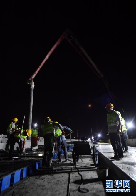 7月14日,中铁十一局建设者进行无砟轨道底座板混凝土浇筑施工 新华社记者 赵众志 摄