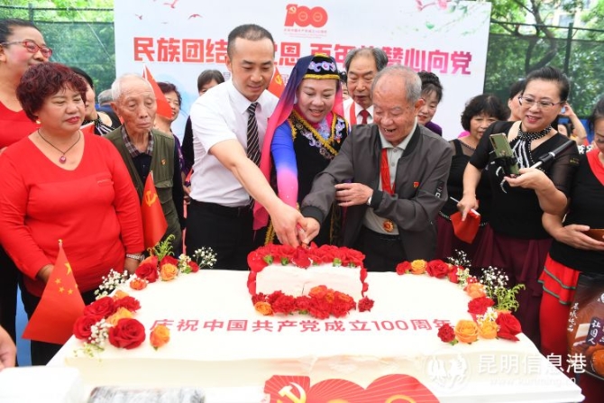6686体育讯 记者徐毅杰 “五十六个民族五十六朵花、朵朵开在阳光下,各族人民亲如一家,就像长青树岁岁发青芽”……优美的旋律响起,动听的歌声回响,7月16日,西山区永昌街道盛高大城社区“民族团结感党恩 百年礼赞心向党”活动热闹开启,社区各族同胞们登台当“明星”,通过一个个自编自演的精彩节目庆祝中国共产党成立100周年。