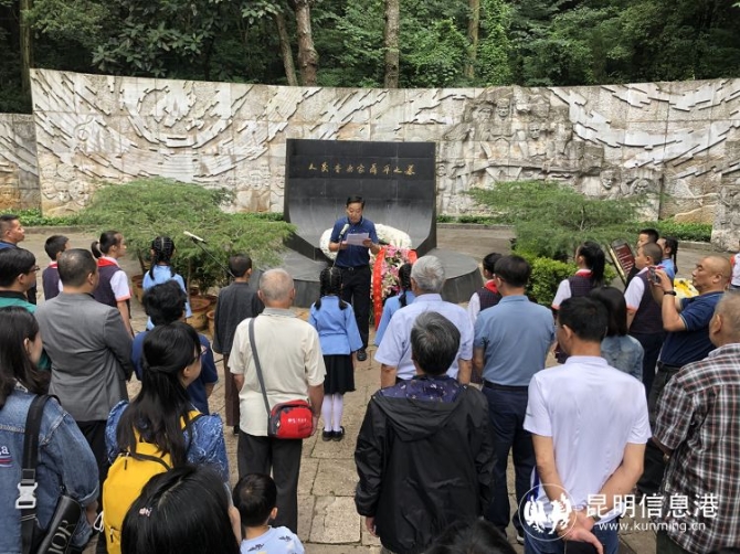 随后,全体人员肃立,向伟大的人民音乐家聂耳三鞠躬。昆明市聂耳研究会原会长、昆明市政协原主席田云翔说:“昆明是聂耳的出生地,教育和音乐启蒙地,投身革命的启航地,又是他的长眠之地。昆明人民更加热爱聂耳。”