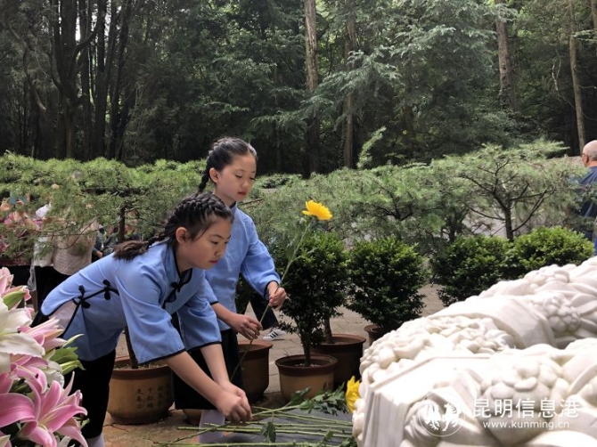 6686体育讯 实习记者韩严 7月17日,聂耳的亲属、聂耳母校师生代表、聂耳研究会专家及会员同社会各界代表人士登上西山拜谒聂耳墓,敬献鲜花,缅怀先烈、一起重温革命岁月。