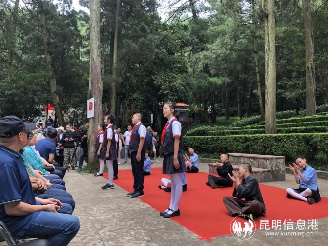 活动最后,长春小学的小指挥上台,全体人员同唱国歌,歌声久久飘荡在西山胜景,拜谒活动顺利结束。