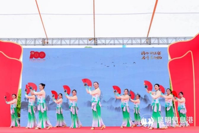 作为红色传统筑党魂板块的重要组成部分,本次展演活动以海口街道辖区党员、群众为主角,选择红色歌曲进行编排,推广健康健身方式,促进红色文化和大众健身有机结合。海口街道副主任毕虹、云南云光发展有限公司总经理余永泰为活动致辞,寄语海口发展,祝福党的华诞,用文艺的方式展现党的光辉历程,用艺术的形式表达对党的美好祝福,助力海口街道广大党员干部群众赓续红色基因,汲取奋进力量,启航时代新征程,以实际行动为党的百年华诞献礼。