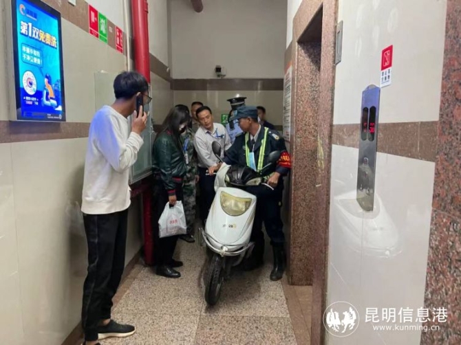 部分群众把电动自行车推进电梯楼道充电的做法,不仅增加了电梯运行负荷,更带来了很多消防安全隐患。为解决电动自行车进入小区楼道停放或上楼层充电存在的问题,去年以来,五华分局联合消防、街道、社区等部门走访辖区多个小区,通过联合检查,入户提示,广泛宣传,全面清理,依法处罚等手段进行整治,但电动自行车进楼,人车同屋,丢飞线充电等违规行为仍屡见不鲜。