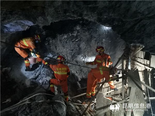7月20日凌晨3时45分,永善县消防救援大队到达事故现场,昭阳区消防救援大队和矿山救援队也相继到达,随即成立了临时指挥部。经了解,事故地点是位于隧道内约1.5公里处一垂直深度约20米且呈漏斗形的矿洞,该隧道狭窄昏暗,错综复杂。被困者于7月19日下午16时左右在施工过程中,因矿洞突然塌方,大量矿石泥沙将矿工腰部以下全部掩埋,最让救援人员感到难办的是有几块巨石挡在被困人员胸口位置,极不稳定,给救援增加了一定难度。