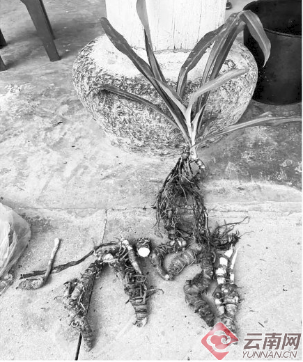 别称:牛尾七、岩七、竹根七等,为百合科植物开口箭及剑叶开口箭的根茎。外观呈扁圆柱形,略扭曲。长10~15cm,直径约1cm。节明显,略膨大,节处有芽及膜质鳞片状叶,节间短。表面黄棕色至黄绿色,有皱纹。断面淡黄白色,细颗粒状。气无,味苦涩。据《云南中草药》论述,开口箭有“温中散寒,行气止痛,主治胃痛,胃溃疡,跌打。”之功效。据《全国中草药汇编》论述:“本品有毒。用至9g有中毒报告,故用量不可过大。中毒时可见头痛,眩晕,恶心,呕吐等症状。需立即停药,及时抢救。”(春城晚报 记者艾子文 云南省疾控中心供图)