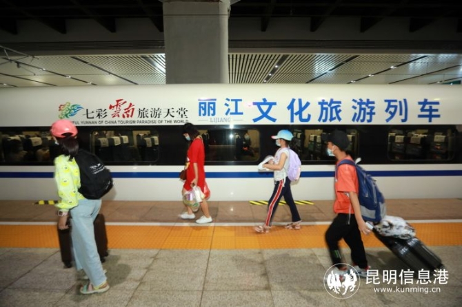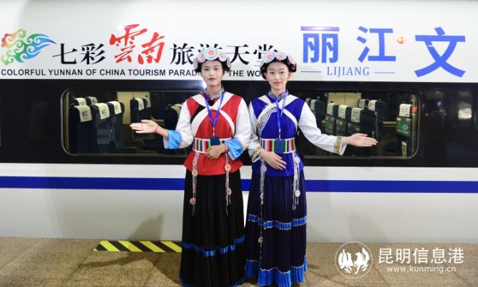此次冠名的昆明南至北京西G406次‘七彩云南文化旅游列车’(丽江号),是我国南北向线路里程最长、经过省份最多的京昆客运专线。全线总长2760公里,设计时速350公里/小时,每天10:58分从昆明南站发车,23:18分抵达北京西站,历时12小时20分;次日,8:00分从北京西站出发,18:49分抵达昆明南站,历时10小时49分。随着冠名列车的启程出发,云南的多元文化和旅游资源将被介绍给全国各地更多游客。