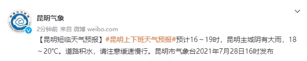 昆明市气象台发布短临天气预报