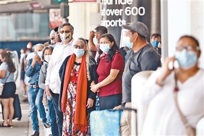 鉴于新冠肺炎感染和住院人数持续增加,美国洛杉矶县近日开始恢复室内公共场所戴口罩的强制规定。图为在美国洛杉矶国际机场佩戴口罩的旅客人群。