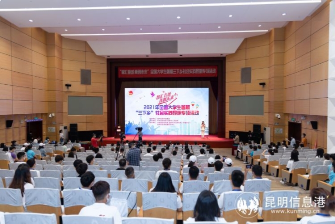 据团市委书记王彦彦介绍,举办“智汇春城青创未来”全国大学生昆明暑期社会实践专项活动是深入贯彻习近平总书记“七一”重要讲话精神和关于青年工作的重要思想的具体实践,也是宣传展示昆明市经济社会发展成就的有效载体和平台。此次活动共选拔了包括北京大学、清华大学、中央民族大学、华中科技大学等30支课题实践团队和中国农业大学、云南大学、四川大学、广西大学等21支线下实践团队,除了省外高校外,省内高校昆明理工大学、西南林业大学、云南艺术学院等也组建了专业学生团队,围绕昆明市高质量全面建成小康社会、巩固拓展脱贫攻坚成果同乡村振兴有效衔接示范创建等工作进行献智献策,通过“线下献青力+线上送青资”模式,重点针对对“1+5”都市驱动型乡村振兴实验区(呈贡万溪冲村、富民县石桥村、宜良县麦地冲村、安宁市雁塔村、石林县矣美堵村、晋宁区福安村)一对一开展实践活动。
