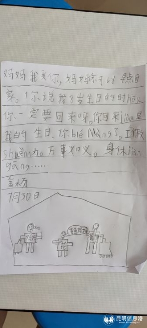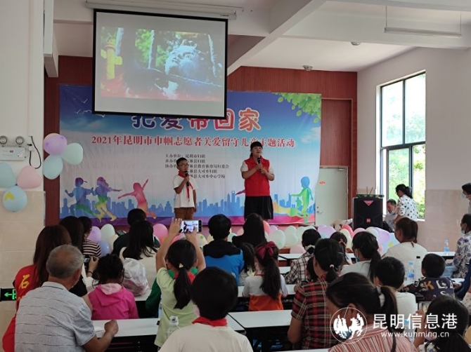 当天,昆明市妇联二级调研员万星宪、昆明市妇联宣传部长戴张溶等同志一起去看望留守儿童,戴张溶代表市妇联致辞时对孩子们进行鼓励,她说“同学们,小朋友们,由于你们的父母外出务工,让你们远离了父母的关爱和教育,父母的爱对你们来说近在眼前,却又远在天边,但是我觉得大家不要悲观,不要失望,我们要勇敢去面对它,并从中学会适应,学会改变,学着自己的力量奋奋斗前行,增强自己的斗志。希望你们每一个都能体会到父母的艰辛,以乐观向上积极进取的精神,努力克服学习和生活上的困难,树立造福社会报效祖国的远大志向,刻苦学习,以优异的成绩回报社会各界的殷切希望,创造一个属于自己的快乐幸福人生。”