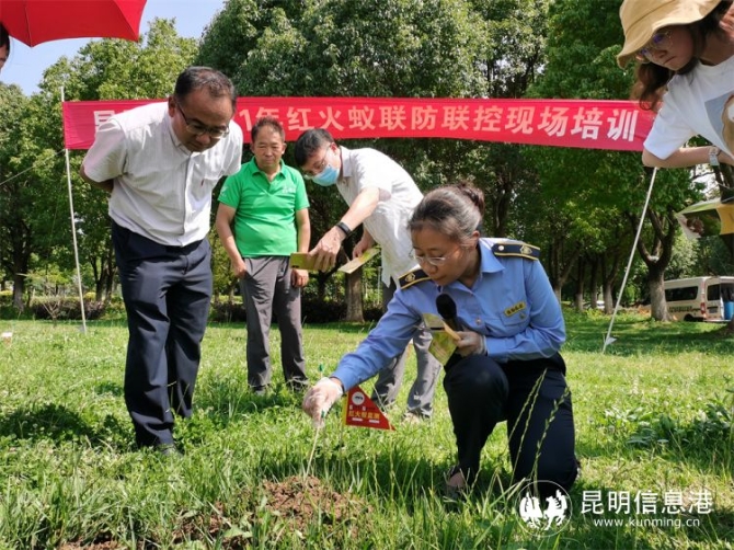 培训现场,市植保植检站站长太一梅从红火蚁危害、来源与扩散、生物学特性、防控技术、预防叮咬等方面向参会人员进行了详细讲解。实地示范操作环节,技术人员示范红火蚁巢的识别、检测方法以及杀蚁饵剂、粉剂的投放使用方法。