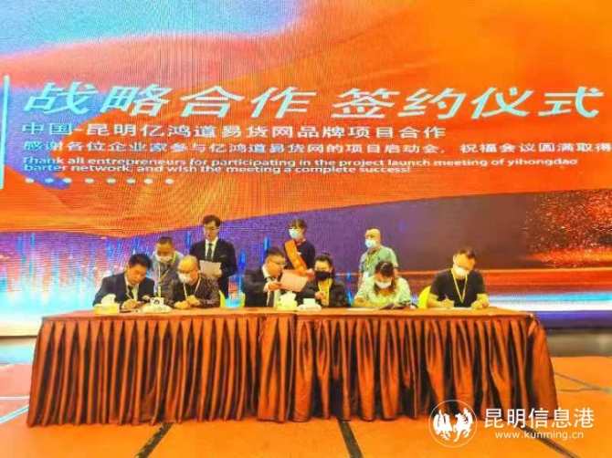 启动会上,伊丽莎白雅顿国际酒庄(云南旺事达商贸公司)、云南氼康普洱茶醋(云南康福茶业公司)、唱云苹果酒(云南滇秋实业公司)、牛栏江牌花椒系列产品(昭通大成农业公司)、驼峰木塑(昆明驼行新材料科技公司)等省内外商家500余家相关企业负责人参加对接会。易货贸易联盟相关企业进行签约。
