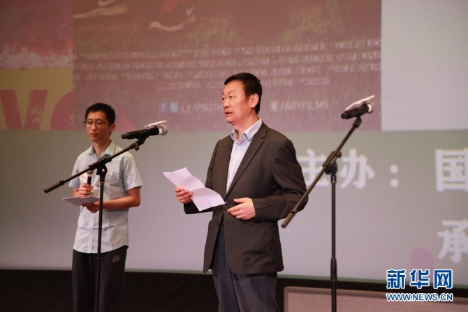 8月4日晚,巴基斯坦电影展开幕式在京举行。图为中国电影资料馆副馆长张小光在开幕式上致辞。新华社记者张漫子摄