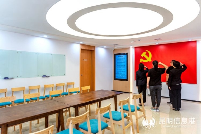昆明片区党群服务中心三期围绕“党建+产业发展”和“党建+营商环境”的理念,打造集党群服务、政治生活、形象展示、开放活动、协商议事、文化宣传等功能于一体的党员群众共同的家。