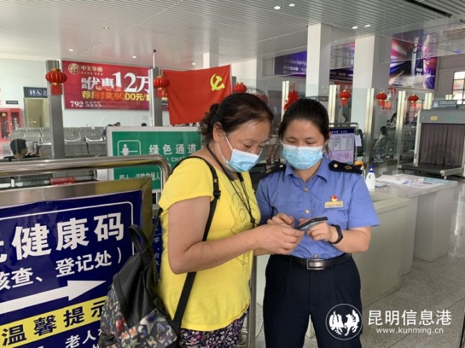 昆明站客运值班站长张菊介绍,在进站口位置,车站专设立服务点为没有健康码的旅客进行登记,在进站时,工作人员将对旅客的健康码、国家政务码进行查验,如果发现有“黄码”或者“红码”的旅客,将会立刻交给疾控中心的工作人员来进行研判。