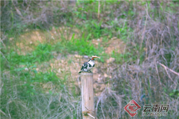 8月6日,保山市龙陵小黑山省级自然保护区技术人员在整理野生动物照片时,发现一种通体呈黑白两色且羽毛斑纹极像青花瓷素斑的鸟类。经国家林业和草原局昆明勘察设计院技术人员曾卫鉴定,确定为翠鸟科鱼狗属的斑鱼狗。