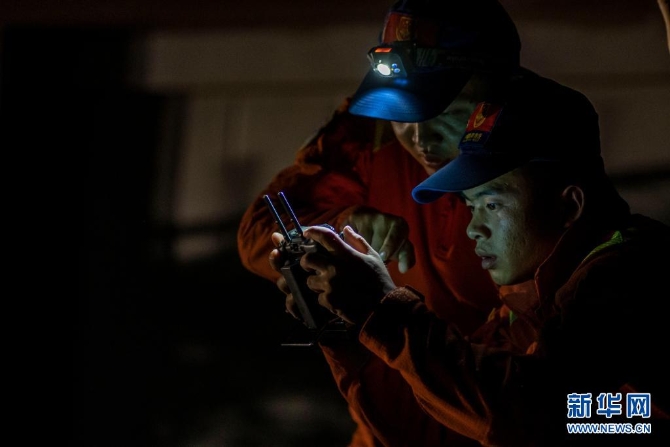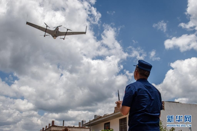6月1日,工作人员使用无人机监测象群行踪。新华社记者 胡超 摄