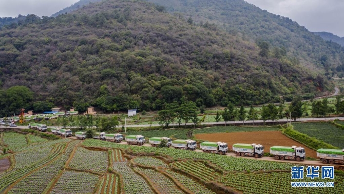 这是6月9日在云南省昆明市晋宁区夕阳乡拍摄的负责堵路的渣土车队。新华社记者 胡超 摄