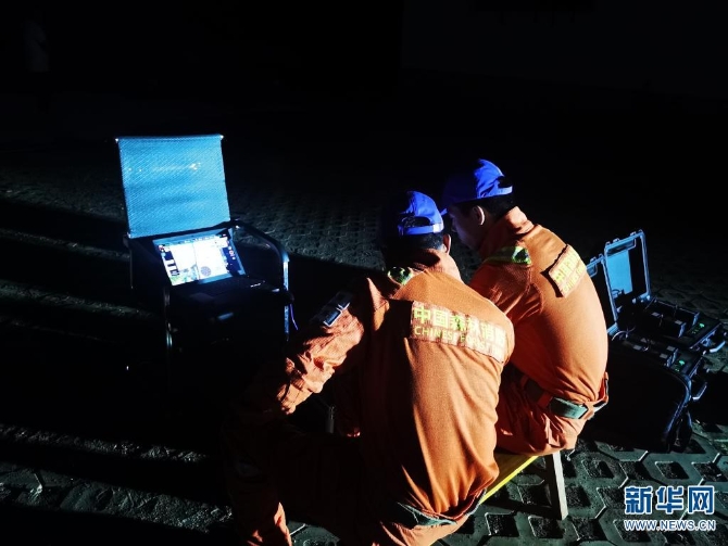 夜晚,队员仍在监测野象(摄于7月10日)。新华网发(云南省森林消防总队供图)