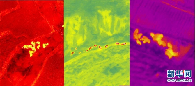 搭载红外热成像仪的无人机拍摄到的野象。新华网发(云南省森林消防总队供图)