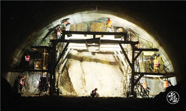 自2019年7月开工建设以来,隧道穿越软弱页岩、岩溶发育带,存在软岩大变形、突泥涌水、变形塌方等高度风险,施工难度较大,先后共发生7次溜坍,初支变形量最大达1.2米。针对上述复杂地质和施工困难,中国铁路昆明局滇南铁路建设指挥部组织中铁三局、中铁二院等单位优化设计施工方案,严格遵循“管超前、严注浆、短开挖、弱爆破、快封闭、勤量测”的隧道施工原则,以劳动竞赛为切入点持续推动施工生产,以“党员红旗责任区”为载体强化施工过程管控,以党员带头技术攻关为引领提升工序工效指标。