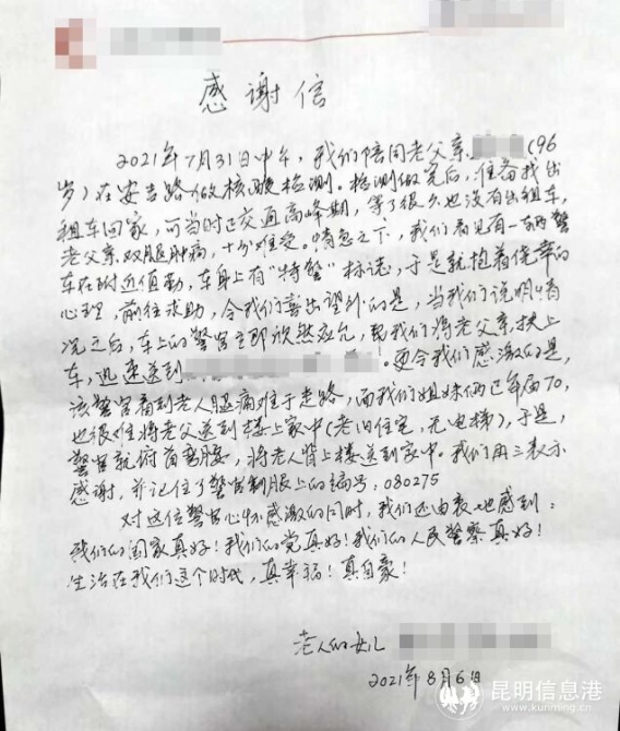 “对这位警官心怀感激的同时,我们还由衷地感到,我们的国家真好!我们的党真好!我们的人民警察真好......”8月6日,骆女士带着一封手写感谢信来到了西山分局刘家营派出所,感谢西山分局78号巡逻车巡逻辅警潘楗明。