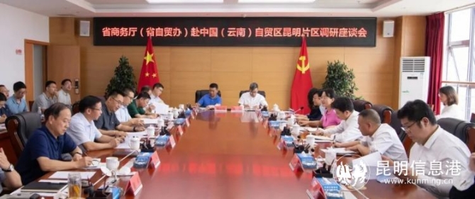 昆明市商务局(市自贸办)、自贸区昆明片区(昆明经开区)有关领导和部门负责人陪同调研座谈。