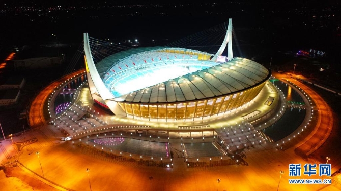 据承建方介绍,体育场总建筑面积8万多平方米,能容纳约6万名观众。