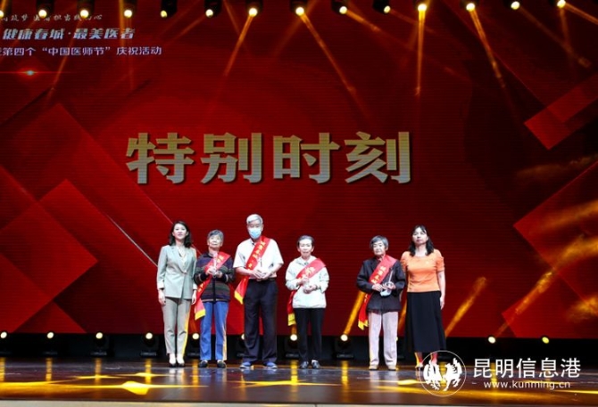 为昆明市卫生健康事业发展作出突出贡献的原昆明市疾病预防控制中心主任马景孚、原延安医院副主任医师肖文君、原昆明市第一人民医院院长陈尚初、原昆明市中医医院院长姚克敏4位老党员老专家获评昆明市第四届“健康春城·最美医者”特殊贡献个人。