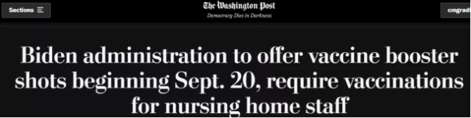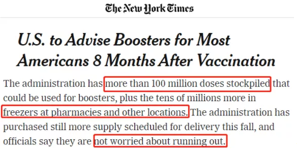 然而作为全球第一抗疫失败国,美国正随着德尔塔毒株来袭进入第四波疫情,拜登政府最初几个月的疫苗接种成绩也正随国内反疫苗和反口罩情绪高涨而付之东流,怎么办?病急乱投医的拜登政府选择无视世卫呼吁,继续为自己囤积的过剩疫苗找到新用处——强推第三针。