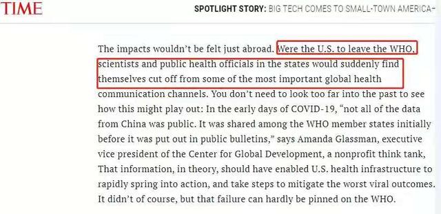 △美国《时代》杂志:如果美国离开世卫组织,各州科学家和官员会发现自己与全球重要的卫生沟通渠道切断了。这在美国抗疫不力的情况下是不可理解的行为。