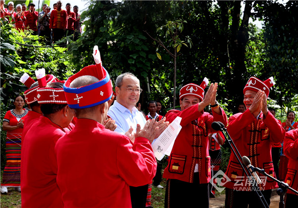 20日上午,省委书记阮成发到沧源向老支书们及阿佤山广大干部群众传达习近平总书记的回信。记者 周灿 雷桐苏 摄