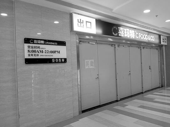 询问商场保安得知,8月22日,喜玛特超市大都摩天购物中心店还在开门营业,但8月23日就没有营业了。