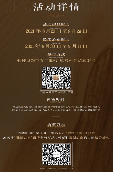 推动城市文化传承与创新,一直是融创云南共建美好城市的使命之一。8月23日,由云南省委网信办、云南省生态环境厅、共青团云南省委、云南日报报业集团、云南报业传媒(集团)有限责任公司共同指导,云南春晚传媒有限公司主办、融创云南协办的“城市新百年·文明守望者”招募活动正式开启。旨在寻找云南的文明守望者的同时,拾起被岁月隐藏的文明,重新绽放云南向上的时代光芒。