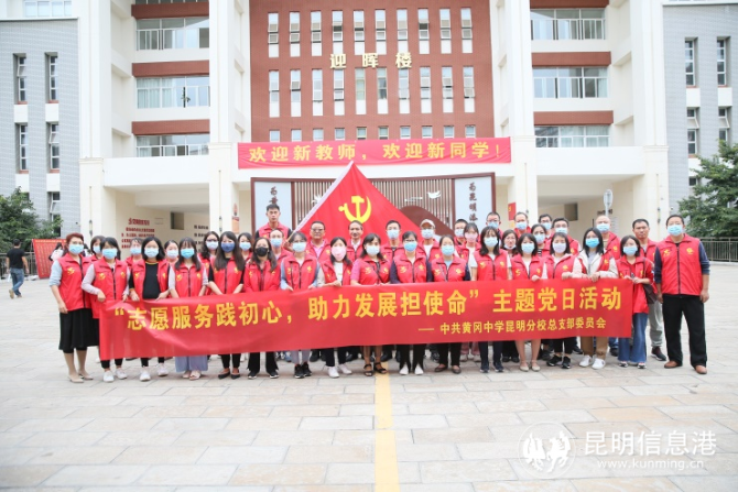 6686体育讯 记者黄彩英 通讯员陈卓 8月23日,黄冈中学昆明分校党总支开展以“志愿服务践初心,助力发展担使命”主题党日活动,让党员站在抗疫保学的第一线,为高一入学新生提供入学指导和力所能及的服务。
