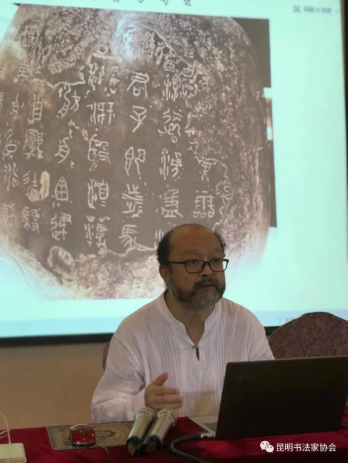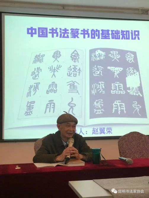 本次培训首先由享受国务院特殊津贴专家、昆明学院教授、昆明书协名誉主席赵翼荣开始教学,赵老从篆书的产生、篆书的特征及篆书的笔法和结构三个部分为学员们讲述了“中国书法篆书的基础知识”。随后由昆明书协副主席、云南艺术学院副教授赵海若讲解篆书《石鼓文》概论与临习,赵老师风趣幽默且有深度的讲解,加深了学员对篆书的理解,让大家都有所收获。