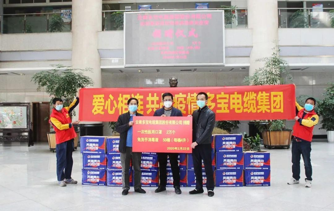 集团公司党支部结合实际践行企业社会价值,让企业在发展和创收的同时,实现“企业——社会”共赢、双赢局面。2020面对突如其来的新冠疫情,“多宝人”全员参与,“稳中求稳,以销定产”做到疫情防控和复工复产“两手抓”、“两不误”,以实际行动积极响应政府号召,支援昆明市新冠病毒应急病房项目建设,预期完成电缆生产交付;向疫情防控一线捐赠口罩120000个、消毒液50桶、爱心蔬菜10余吨、党员个人捐款2000余元,企业累计捐款捐物超过100万元;近年来集团公司在党支部的带领下积极参与社会公益活动,引导党员用行动诠释服务人民、企业服务社会的宗旨:先后走访云南省干旱地区、脱贫攻坚区域——东川区、寻甸功山、柯渡学校、贵州省锦屏县,向昭通鲁甸、汶川地震灾区,昆明理工大学艺术与传媒学院、云南交通职业技术学院品学兼优的大学生、昆明知青老年公寓、普宁敬老院等送去企业的关怀和温暖,初心不改,服务品质“双升级”——独家赞助2021年昆明市爱心送考活动,为云南30万考生保驾护航,为推进高新区党建联盟工作,在六一国际儿童节来临之际,为辖区高新三中、高新四小的贫困学生捐赠学习用具,把爱心累多维度延伸,近年来向社会献爱心累计捐赠金额达2000万元;积极做好企业纳税工作,实现企业效益的同时,服务好社会和国家,每年累计纳税2000万元;为进一步壮大企规模,吸纳有志之士加入多宝,实现企业和员工的双赢,每年向社会提供就业岗位150余个。