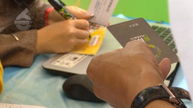 记者 :“我们现在来到位于大都摩天购物中心的喜玛特超市门口,这里同样设置了一个退卡信息办理点,有工作人员也是在为消费者登记信息。”