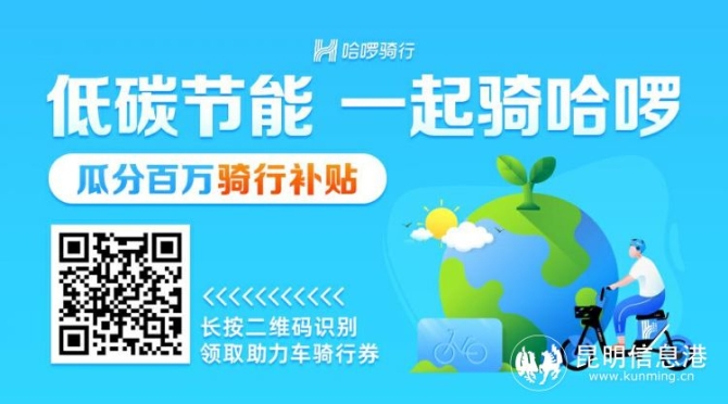 据了解,在节能宣传周期间,昆明用户只需要识别以下领券二维码,即可免费领取哈啰出行骑行券。