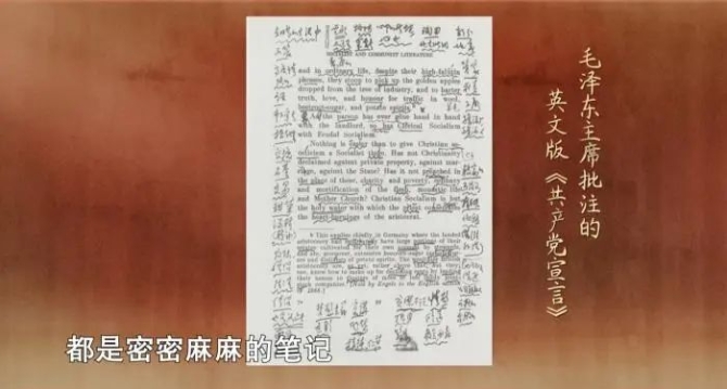 1954年秋天起,他重新开始学英语,第一个读本就是英文版的《共产党宣言》,从第一页到最后一页,都是密密麻麻的阅读笔记。